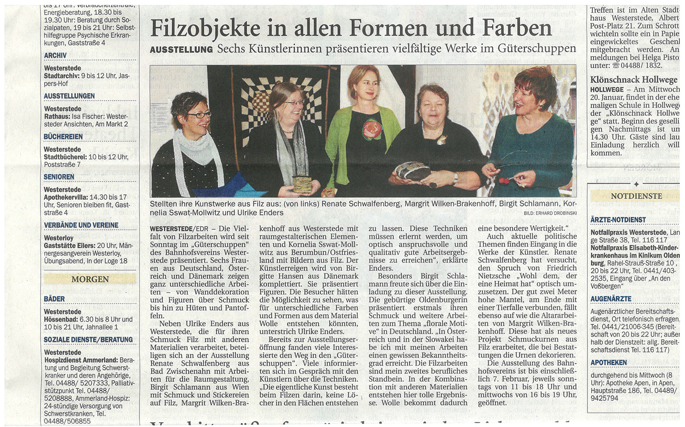 "Filzobjekte in allen Formen und Farben" (Nordwestzeitung 20.1.2016)
